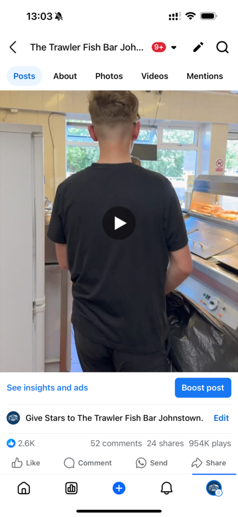 We partnered with Trawlers Fish Bar to create a memorable and approachable brand identity that reflects their quality and charm. Taking it a step further, we developed and executed a playful and humorous social media strategy. By focusing on funny and relatable social media reels, we reached millions of people, with several reels achieving up to 2 million views each. This helped turn Trawlers Fish Bar into a local sensation and a popular name in Johnstown and beyond.